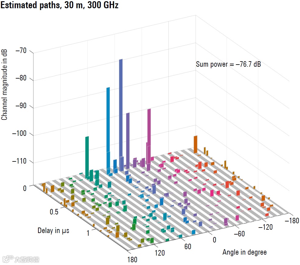 图33:158GHz(上图)和 300GHz(下图)在 30米距离处(室外)延迟角域的评估路径