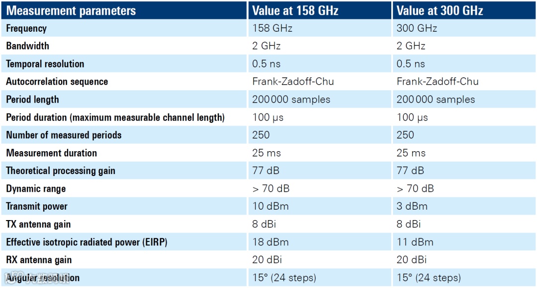 第六章 描述了信道传播测量的概念,并介绍了在慕尼黑罗德与施瓦茨总部进行 158GHz 和 300GHz 信道测试的一些初步结果。
