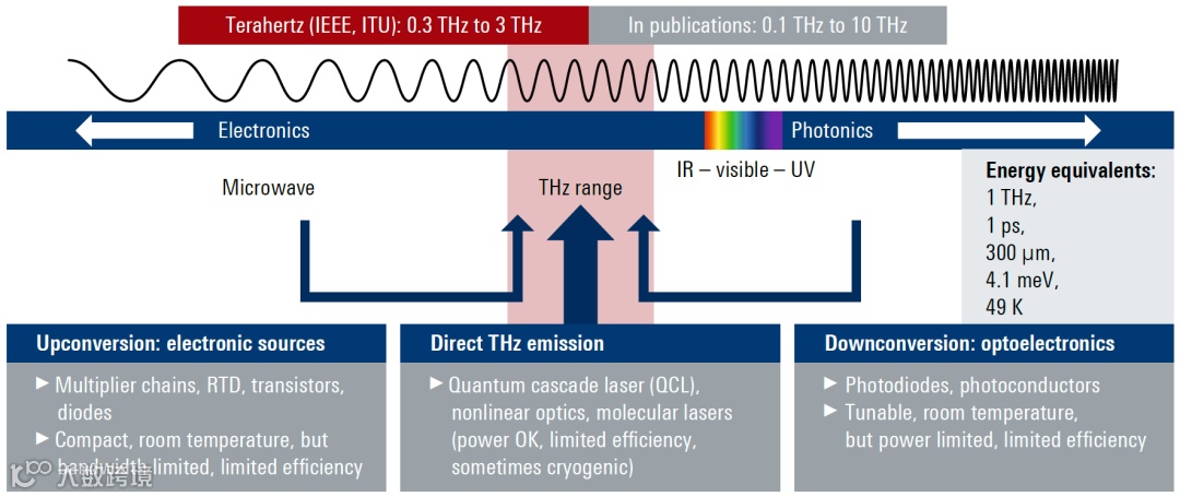 图6:太赫兹频谱在电子和光子学之间电磁波谱和应用