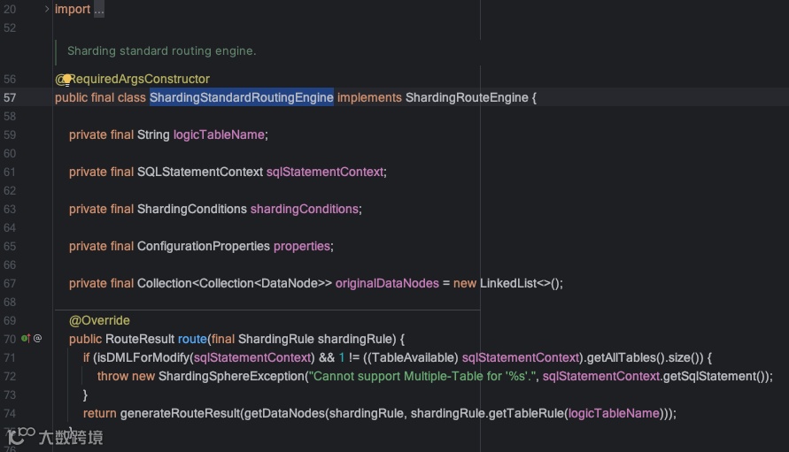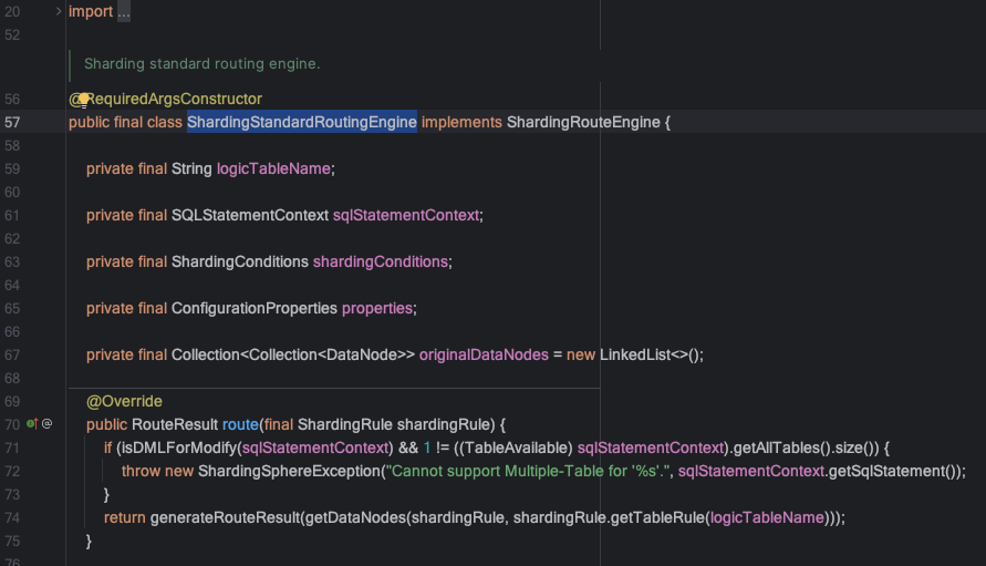 ShardingStandardRoutingEngine类中的route方法为计算路由的入口,返回的结果是数据库和表的分片集合: