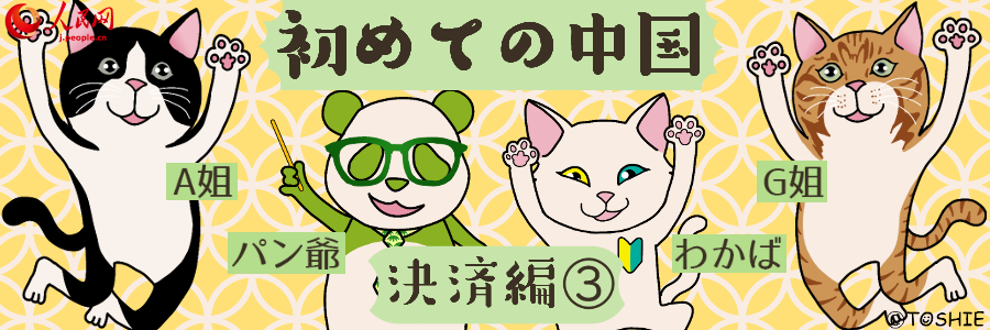 初めて中国に行こうと思っているわかばちゃんには、わからないことがいっぱい。わかばちゃんの「どうしたらいいの?」という質問に、ぶらり北京でおなじみのA姐とG姐が答えます。中国のことならお任せのパン爺も時々ご意見番として動画に登場。中国初心者の質問に答える「初めての中国」。この決済編では、計8回にわたって、以下のような内容でお送りしていきます。