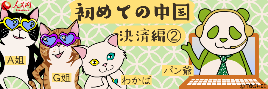 初めて中国に行こうと思っているわかばちゃんには、わからないことがいっぱい。わかばちゃんの「どうしたらいいの?」という質問に、ぶらり北京でおなじみのA姐とG姐が答えます。中国のことならお任せのパン爺も時々ご意見番として動画に登場。中国初心者の質問に答える「初めての中国」。今回からは決済編!計8回にわたって、以下のような内容でお送りしていきます。