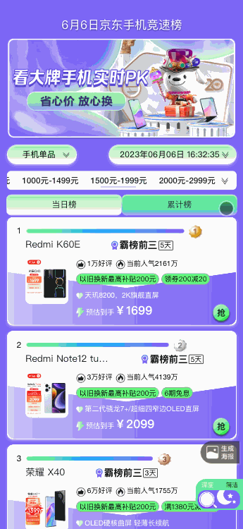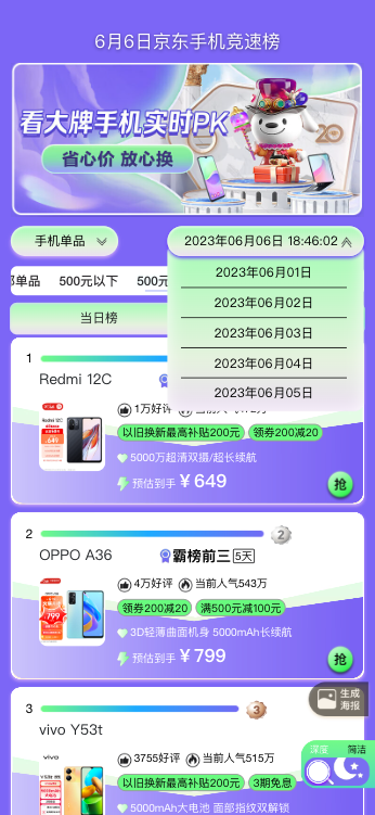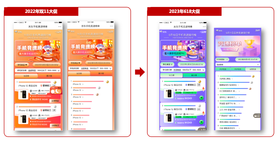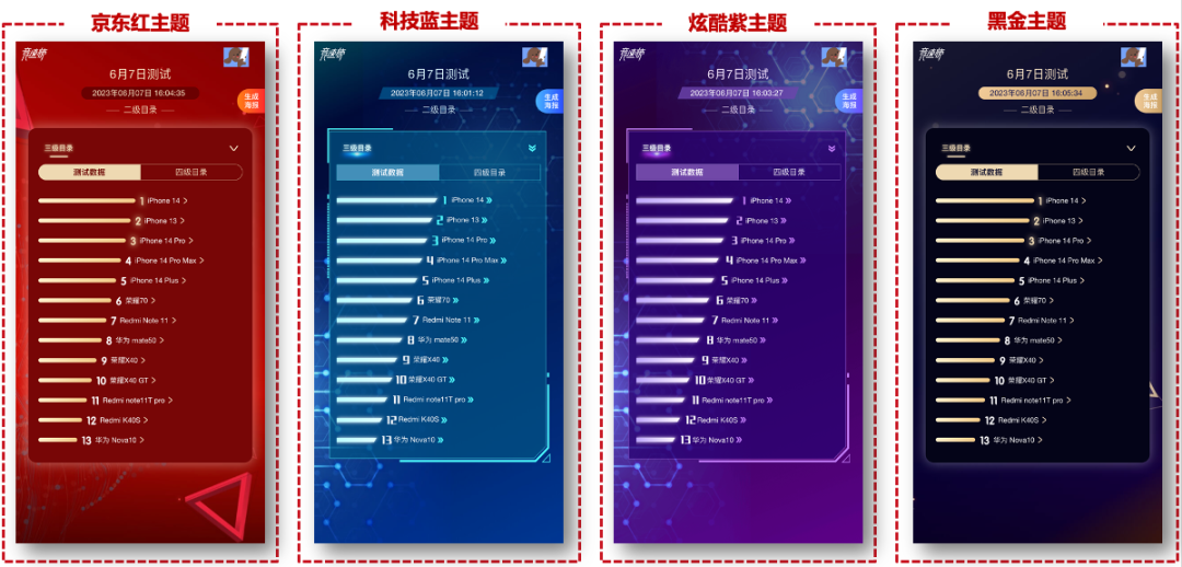 竞速榜单的不断升级,将更有效的卷动厂商,同时也能提高榜单引单引流效率,在大促期间成为手机品类与品牌博弈的重要工具之一。因此每年大促都会进行一次UI调整,主要涉及颜色调整。所以我们将主题色提取出,修改公共变量,提高开发效率。主要总结为6种常用变量,颜色、字体、边框、布局、动画、响应式。