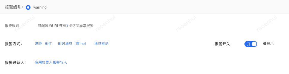 新增ump监控,每分钟会去访问页面链接的连通性,判断页面是否返回除了200、301、302的异常状态码,如果连续3次页面访问异常。如返回异常状态码,则通过公司内部聊天工具咚咚、邮件等方式进行消息推送。