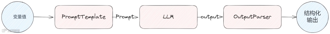 最基本的链为LLMChain,由PromptTemplate、LLM和OutputParser组成。LLM的输出一般为文本,OutputParser用于让LLM结构化输出并进行结果解析,方便后续的调用。