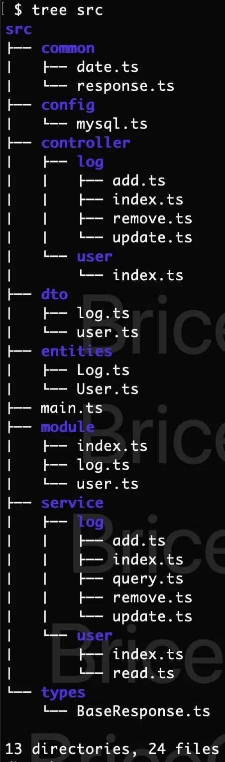 // packages/node-server-demo/src/service/user/read.tsimport { Injectable } from '@nestjs/common';import { User } from '@/entities/User';()export class ReadUserService {constructor() {}async findByName(name: string): Promise<User> {// 可以处理判空,从数据库读取/写入数据,可能会被多个 controller 进行调用console.info('ReadUserService findByName > ', name);return Promise.resolve({ id: 1, name, job: '程序员', gender: 1, age: 18 });}async findById(id: number): Promise<User> {console.info('ReadUserService findById > ', id);return Promise.resolve({id: 1,name: 'BriceChou',job: '程序员',gender: 1,age: 18,});}}