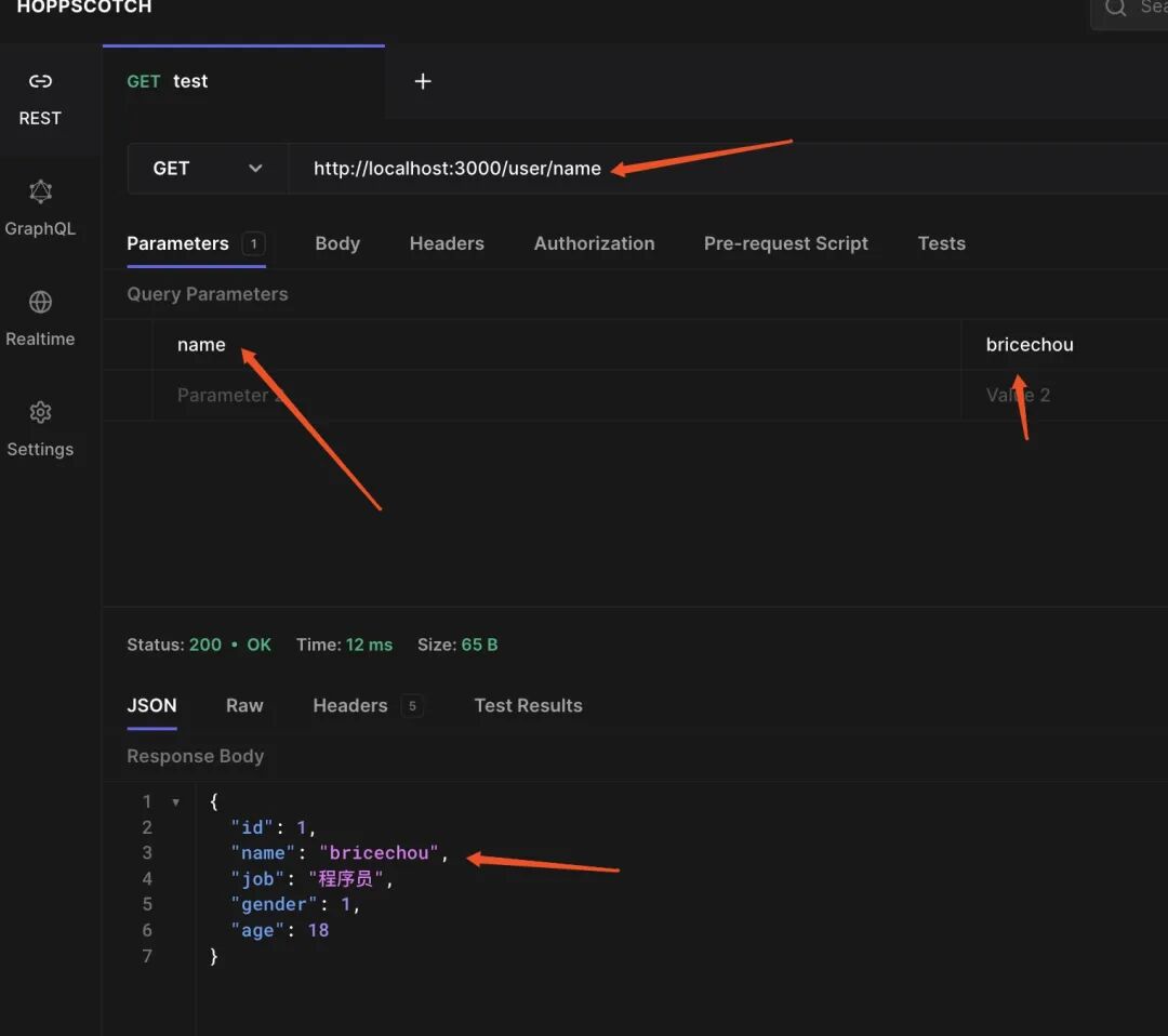// packages/node-server-demo/src/controller/user/index.tsimport { Controller, Get, Query } from '@nestjs/common';import UserServices from '@/service/user';import { GetUserDto, GetUserInfoDto } from '@/dto/user';export class UserController {constructor(private readonly userService: UserServices) {}// Get 请求 user/name?name=bricechouasync findByName( getUserDto: GetUserDto) {return this.userService.read.findByName(getUserDto.name);}// Get 请求 user/info?id=123async findById( getUserInfoDto: GetUserInfoDto) {const user = await this.userService.read.findById(getUserInfoDto.id);return { gender: user.gender, job: user.job };}}