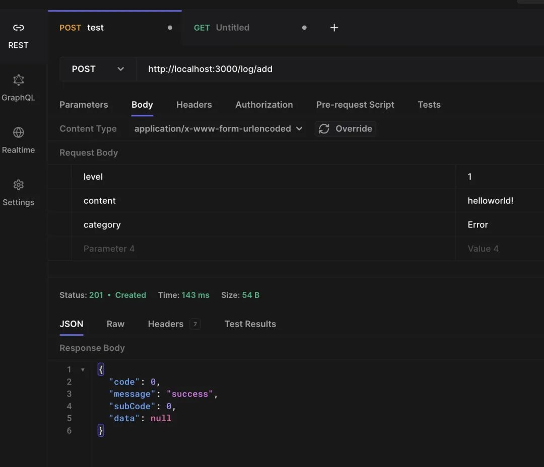 import { Log } from '@/entities/Log';import { Injectable } from '@nestjs/common';import { AddLogDto } from '@/dto/log';import { InjectModel } from '@nestjs/sequelize';import { ResponseStatus } from '@/types/BaseResponse';import { getErrRes, getSucVoidRes } from '@/common/response';()export class CreateLogService {constructor((Log)private logModel: typeof Log,) {}async create(createLogDto: AddLogDto): Promise<ResponseStatus<null>> {console.info('CreateLogService create > ', createLogDto);const { level = 1, content = '', category = 'INFO' } = createLogDto || {};const str = content.trim();if (!str) {return getErrRes(500, '日志内容为空');}const item = {level,category,// Tips: 为防止外部数据进行数据注入,我们可以对内容进行 encode 处理。// content: encodeURIComponent(str),content: str,};await this.logModel.create(item);return getSucVoidRes();}}