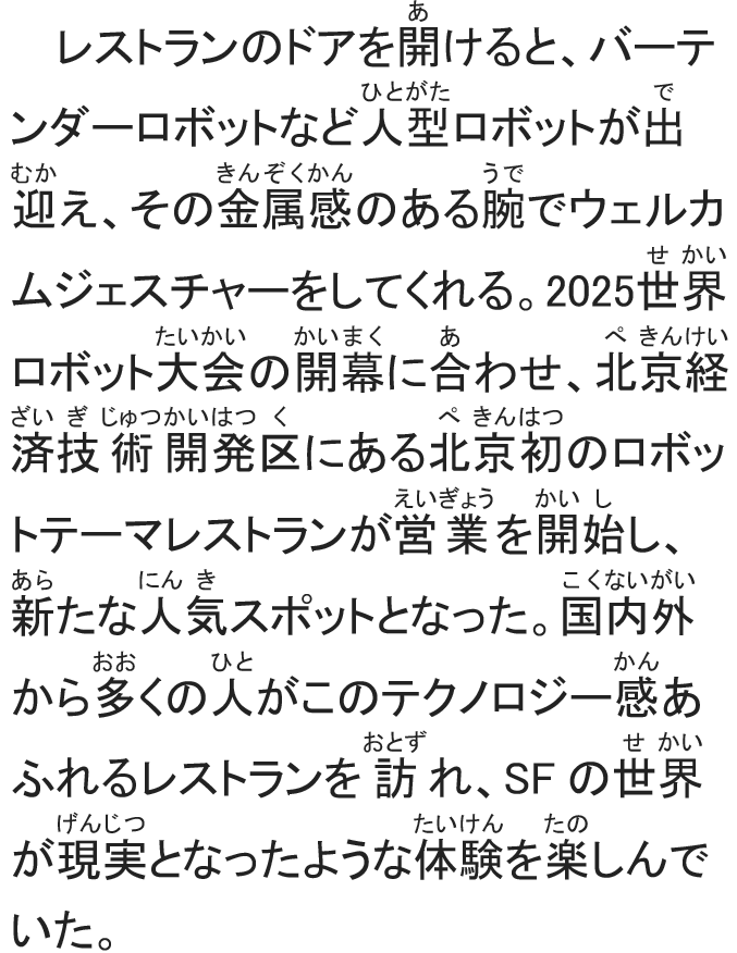 8月8日、北京初のロボットテーマレストラン「ロボット焔究所」が正式に営業を開始。このレストランには20種類以上の成熟したロボット製品が集結し、客にテクノロジーとグルメの饗宴を提供している。(撮影・張祥毅)