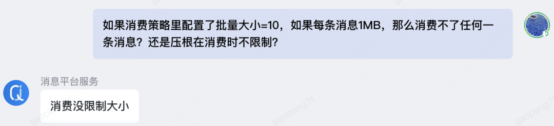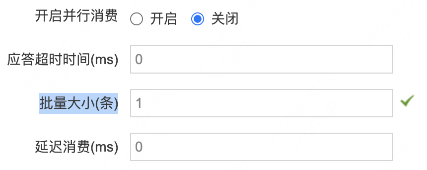 对于京东物流绝大部分业务系统来讲,这点提升与繁重的业务处理来比不值一提,例如:I/O节省了5ms,但单个消息处理需要200ms(因为要通过接口查询,处理,然后写库),反倒是side effect成为主要矛盾。因此,绝大部分场景下该值应该设置为1。如果业务逻辑类似于集齐:把N个消息拿下来,本地缓冲暂不处理,等满足条件了再merge并一次性处理,那么可以调整批量大小为非1。