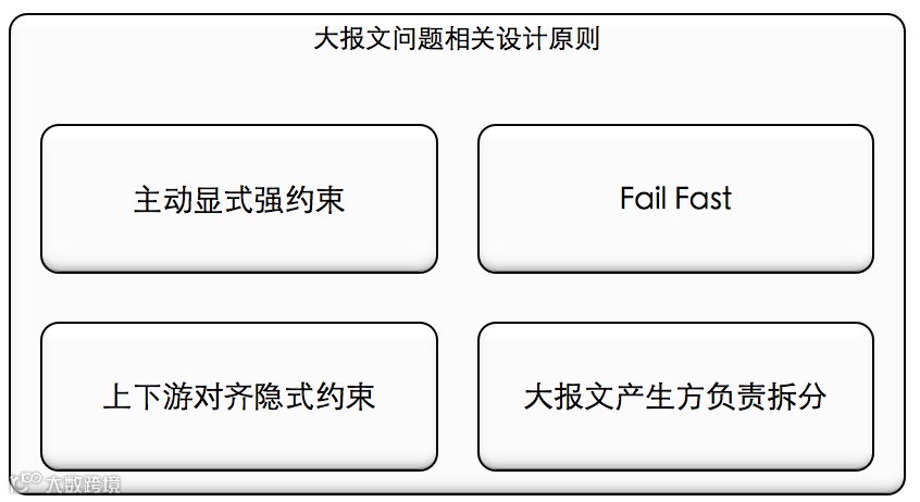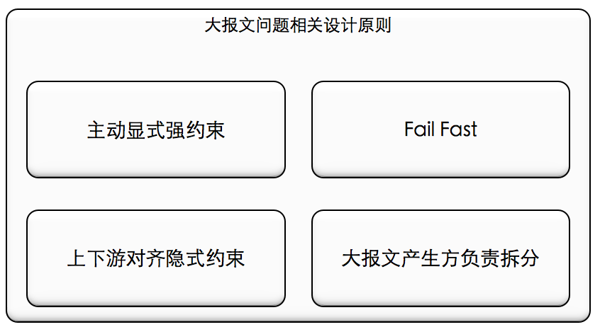 这个原则并不是说下游不用关心大报文问题,恰恰相反,链路的每个环节都要关心,但Fail Fast可以降低整体的不必要的损耗成本,也可以缓解某个环节保护机制缺失带来的人工介入和修数成本。