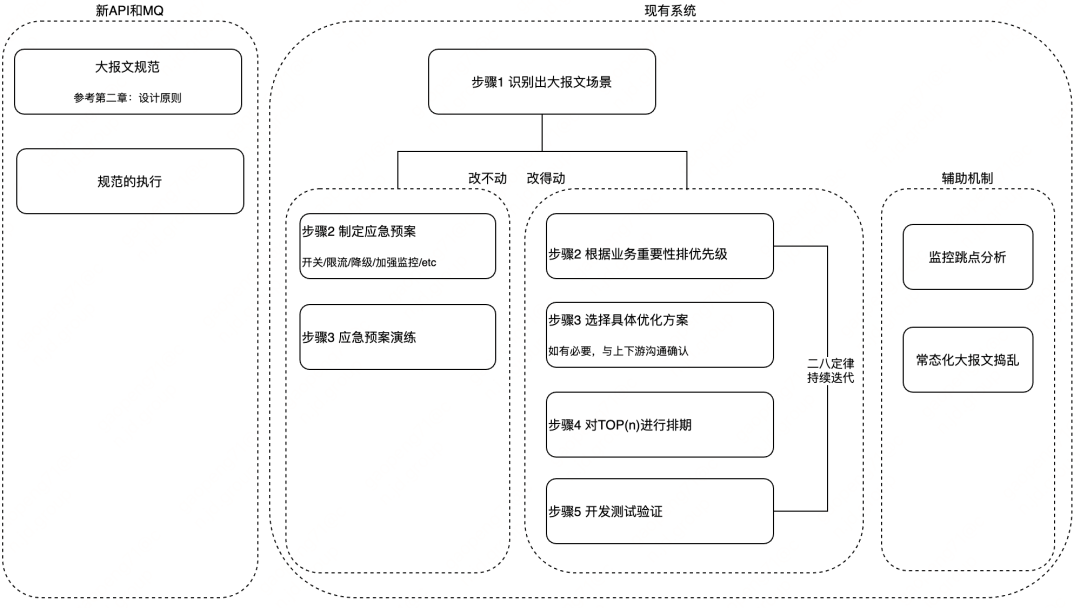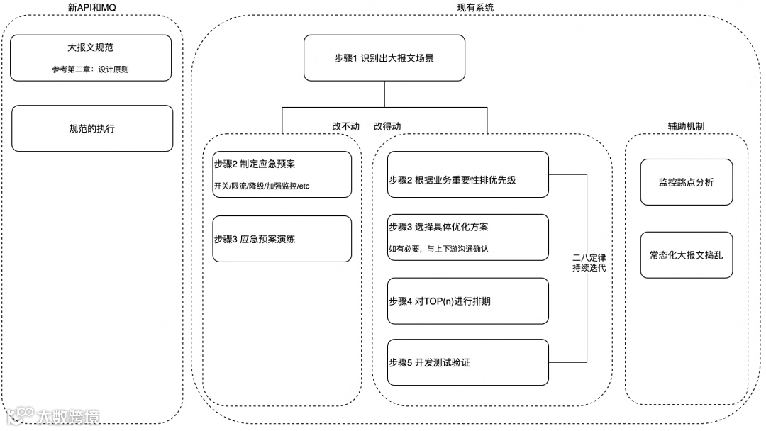 为所有JSF和MQ加入大报文预先监控机制(具体可参考【5.1 识别大报文场景】,根据是否改得动做相应的治理动作。
