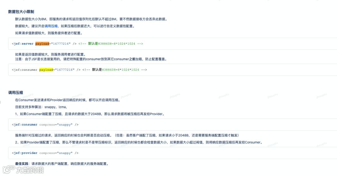 JSF对provider(jsf:server)和consumer可以分别设置不同的报文大小限制,理论上也可能出现问题,但在京东物流尚未出现,可不必关注。