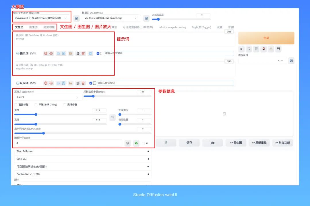 二、一幅AI绘画作品 = 提示词 + 参数设置 + 模型