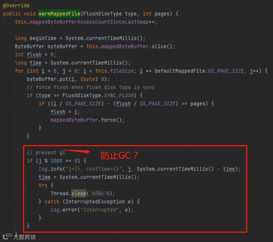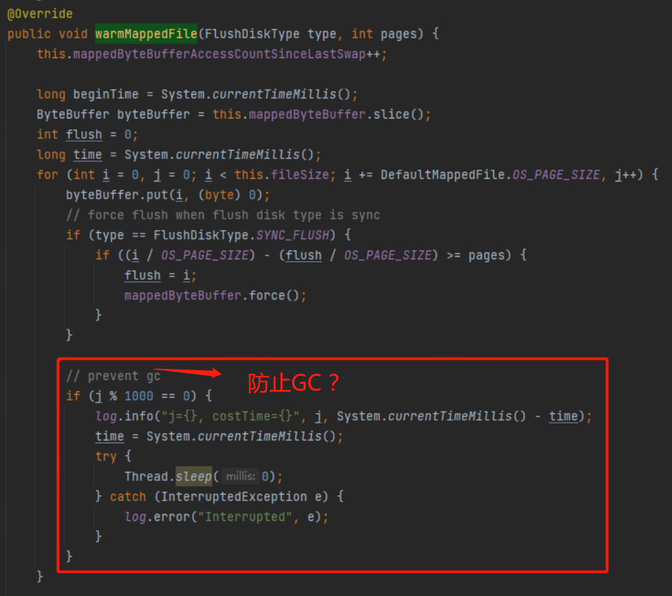 代码出处:org.apache.rocketmq.store.logfile.DefaultMappedFile#warmMappedFile