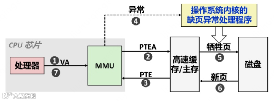 1)先探讨第一个问题,关于缺页中断的原理,属于计算机组成原理的范畴,这里不展开详细介绍,大概流程可以参照下面这张图: