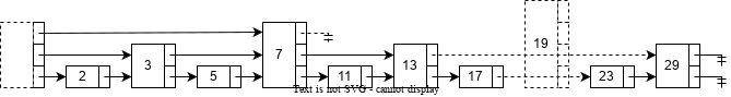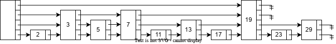 在前面描述的数据结构中,每个节点的级别都是与元素数量有关的,当插入或删除时需要对数据结构进行调整来满足这样的约束,这是很呆板且低效的。为此,可以将每个 节点就有一个指针指向下一个 节点的限制去掉,当新元素插入时为每个新节点分配一个随机的级别而不用考虑数据结构的元素数量。