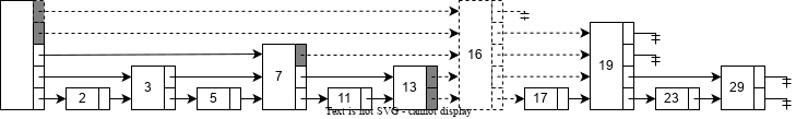 Figure.3将这种想法扩展,每个序数是4的倍数的节点都有一个指针指向下一个序数为4的倍数的节点。只有 个节点被考查。