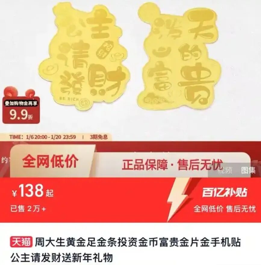 金のジュエリーのほか、0.01グラムから0.2グラムほどの超少量の金しか使われていない金シールも流行している。価格は数十元(1元は約21.5円)から百数元までまちまちだ。