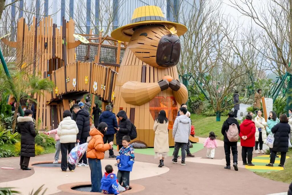 花園城は開放型公園と一体化し、全国初のカピバラのテーマパークを併設している。
