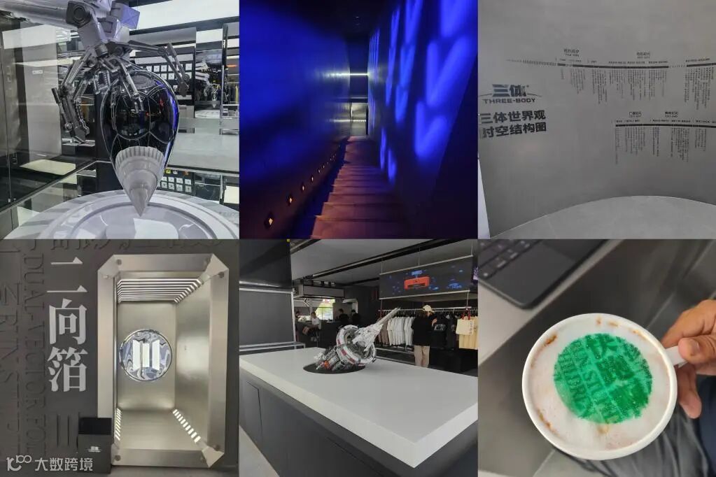 同じく成都市の交子大道にある双子塔の下には、建物の中に浮かぶ「水滴」がひときわ目を引く施設がある。この施設は、9月に完成した「三体4D空間」だ。館内にはSF小説「三体」に登場する次元レベルの武器「二向箔」などのキーワードが壁いっぱいに記され、編年体形式で三体の宇宙の進化の物語が紹介され、まるで空間トンネル「ワームホール」のような場所もあり、訪れた人をこれまで体験したことのない宇宙の次元へ連れて行ってくれる。ここには、「三体」をテーマとした文化クリエイティブグッズ、衣類・服飾品、アフターヌーンティー、VR(仮想現実)インタラクティブプログラムなどもある。この施設は、クリエイティブな消費空間であるだけでなく、SFの世界をリアルに体験できる場所でもある。