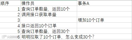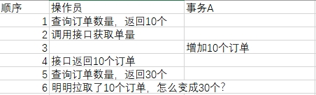 举例:操作员查询可生产单量10个,调用接口下发10个订单,事务A增加10个订单。操作员获取10个订单落库,查询 发现变成30个订单。