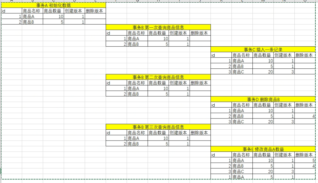 所以当事务E提交后,当前读获取的数据和事务B读取的快照数据明显不同。