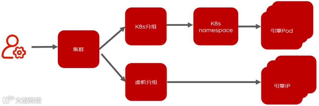 这个模型既支持传统虚机,也支持K8s,集群和分组都是计算资源的抽象,一个集群下有多个分组。集群主要是为了方便管理多个分组,主要属性就是名称和备注,分组有一个环境属性:测试、预发或生产,还有资源类型属性,资源类型支持虚机和K8s。对于K8s类型,一个分组关联一个K8s namespace,星链自动创建和管理计算引擎Pod。对于虚机,需通过其他方式创建计算引擎,然后将引擎IP关联至星链分组。用户在开发、调试、测试阶段不需要申请任何计算资源。部署生产时,需自行申请K8s资源或虚机资源,然后关联到星链集群和分组,每个团队只需申请和配置一次。声明式部署对于K8s分组和虚机分组都是一样的,模型如图3所示。