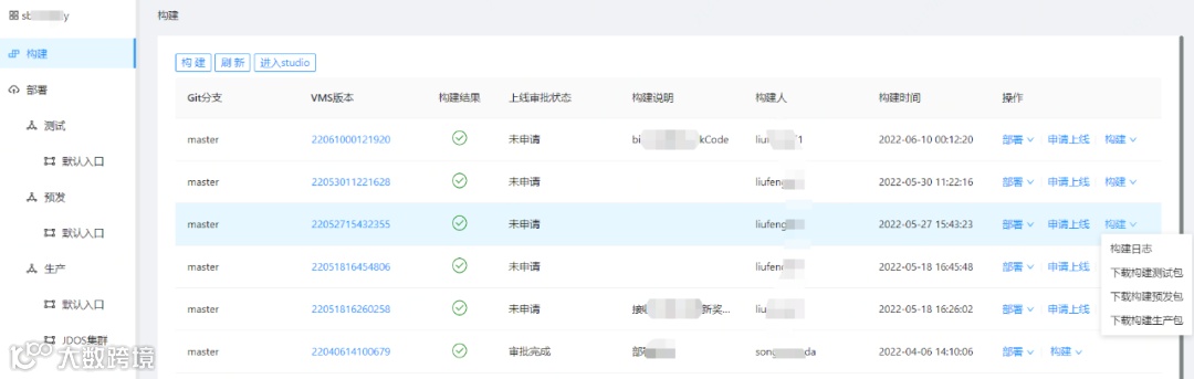 星链支持一键在线构建打包,可以实时查看构建日志。为了管控上线质量,星链集成上线审批流程,如图10所示。