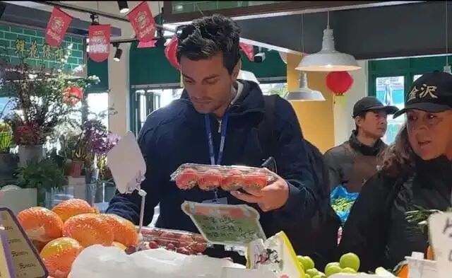 果物売り場の前で、スペイン人の男性・Andresさんは、干し柿を指さしながら、「これは何?」とツアーガイドに聞いていた。ガイドが「これは干し柿で、生柿よりも甘いし、保存できる時間も長い」と説明すると、「生柿しか食べたことがない。干し柿を見るのは初めて」とAndresさん。そして、ガイドがその横の生柿を指さしながら、「中国にも生柿がある」と説明すると、Andresさんは「中国にもあるの?スペインでは、おばあちゃんの家でしか柿を食べたことがない」と話していた。その後、Andresさんは白イチゴに興味を持ち、「イチゴがなぜ白いの?クレイジーだ」と目を丸くし、最終的に33元(1元は約21.2円)で白イチゴ1パックと生柿1パックを購入。「安い!」と喜んでいた。