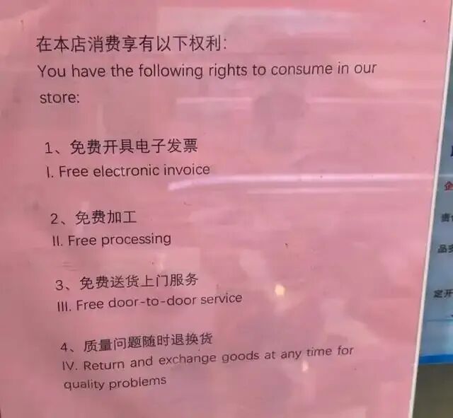 外国人が増えているため、鄭さんは店で商品を購入した消費者に向けて、中国語と英語で「電子版レシートを発行します」「無料で加工します」といった表示をするようになった。