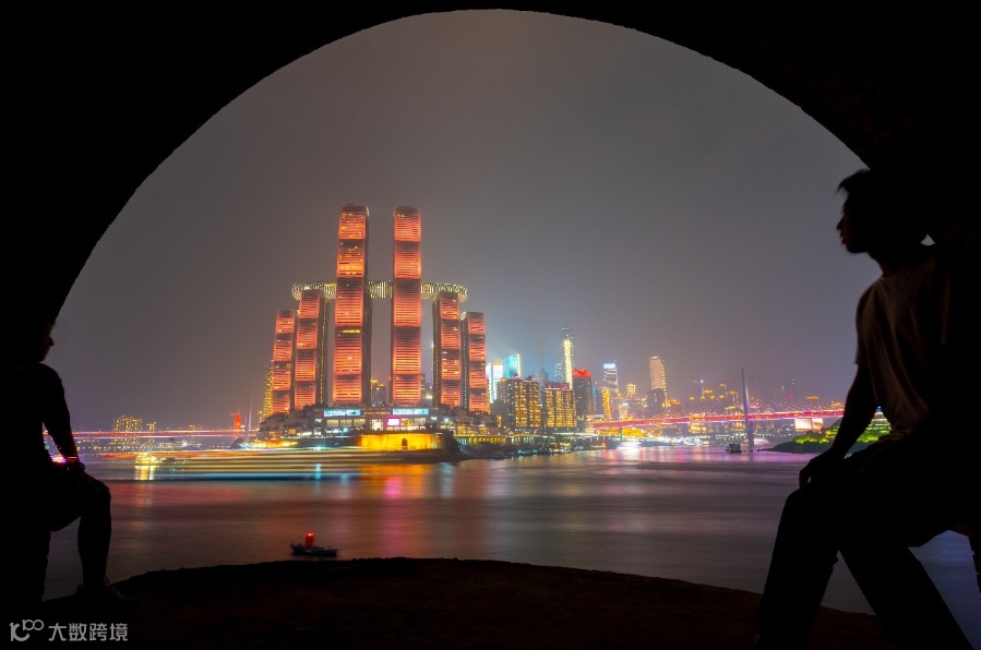 重慶の夜景。暗い空間でこの夜景を見てから外に出るとまるで夢から覚めたような気分に(撮影·宮﨑一騎)。