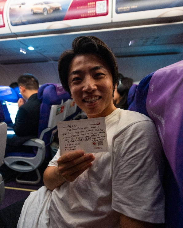 上海に向かう機内でCAからもらった初めての「ファンレター」。「実際に自分のコンテンツを見てくれている人がいるんだと実感した非常にうれしい瞬間でした」と語る宮﨑さん。