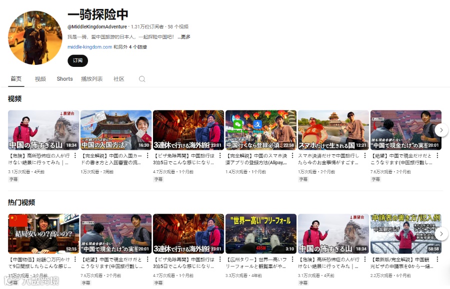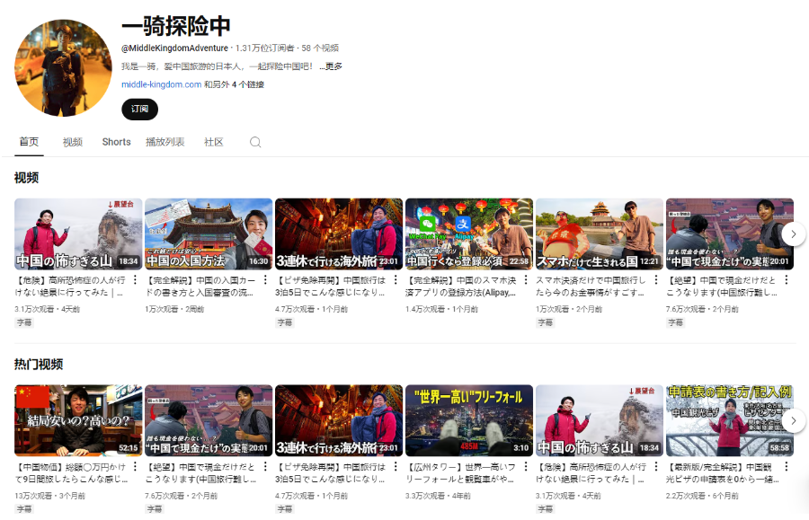 日本人向けに中国旅行に関するコンテンツを発信するYouTubeチャンネル「一騎探検中」とホームページ「ミドルキングダムの冒険」などを運営。