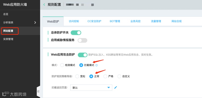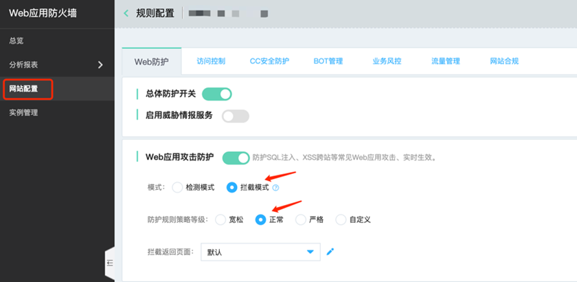 京东云用户具体操作可参考:在Web应用防火墙侧边栏选择网站配置,选择域名的规则配置,进行Web防护配置。其中正常和严格规则策略等级支持防护Log4j2漏洞。