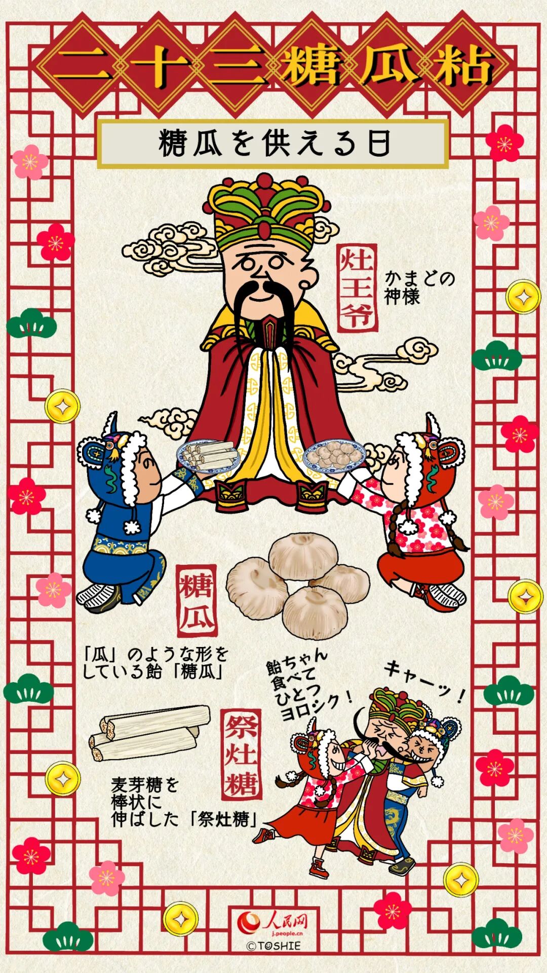 第1回は大晦日のちょうど1週間前となる旧暦12月23日の風習「糖瓜粘(糖瓜を供える日)」を紹介。ほとんどの地域で、この日から本格的に春節に向けた準備が始まることになる。