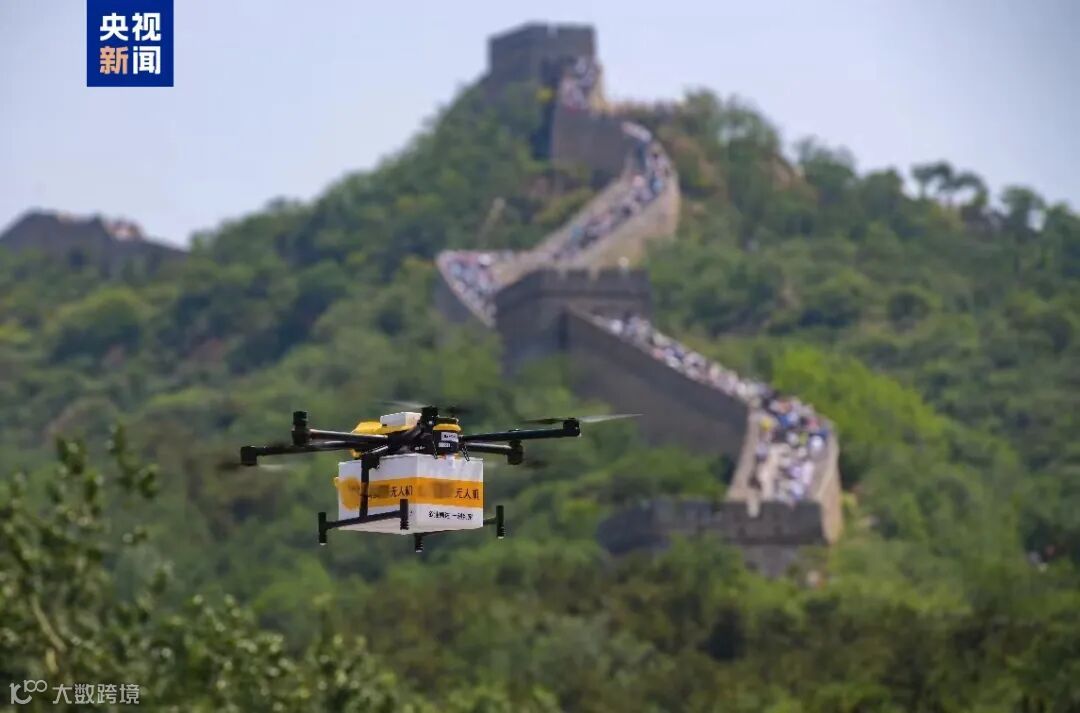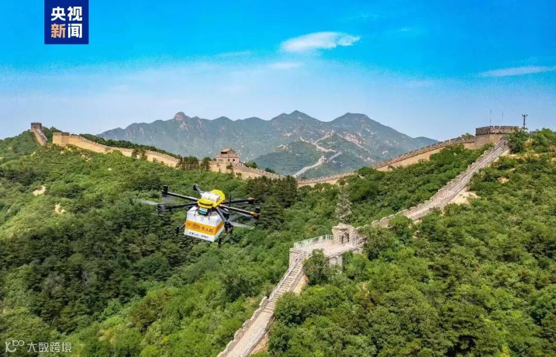 八達嶺長城の望楼「南五楼」で、観光客の女性・王さんがスマートフォンを取り出し、QRコードをスキャンして商品を注文すると、すぐに荷物ボックスを積載した黄色い小型ドローンが飛んできて、安定を保ちながら着陸した。王さんは「長城でこんなに気軽に食事が注文できるなんて思いもしなかった。これからは苦労して食べ物を背負って来なくてもよくなる」と語った。