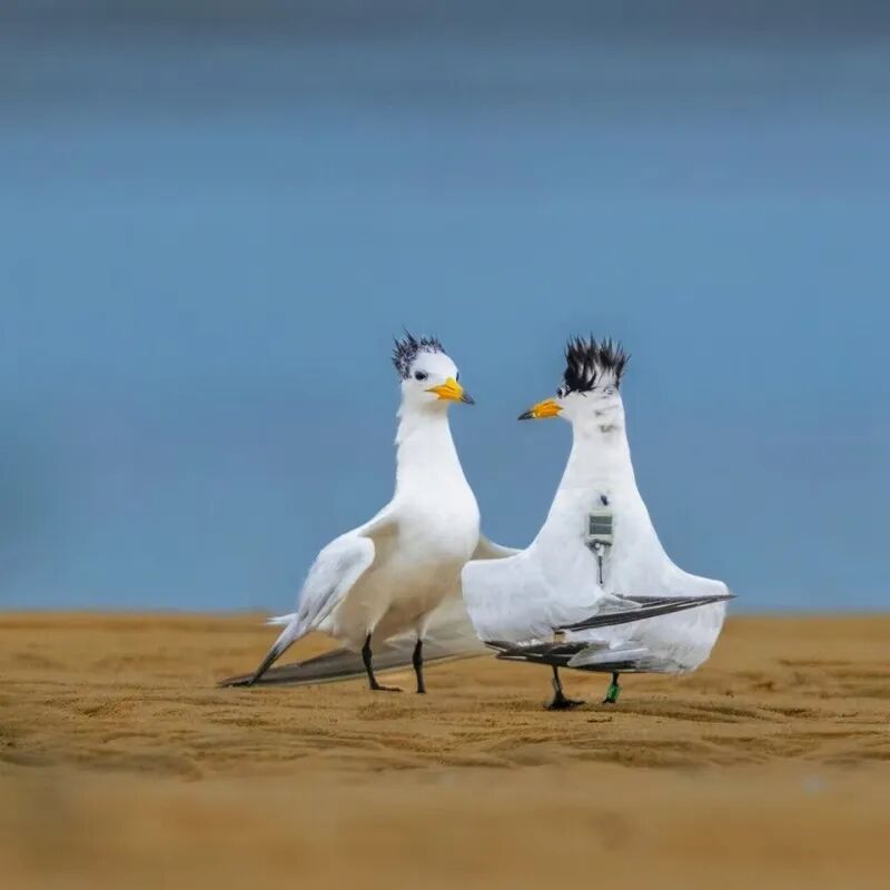 中华凤头燕鸥,为国家一级重点保护野生动物,是中国最为珍稀的鸟类之一,被《世界自然保护联盟濒危物种红色名录》列为极危物种。目前全球种群数量仅200余只,是比大熊猫还稀少的物种,被称为“神话之鸟”。