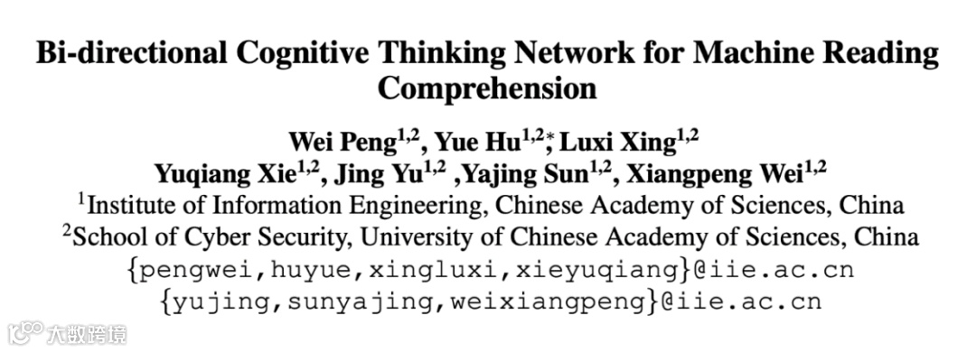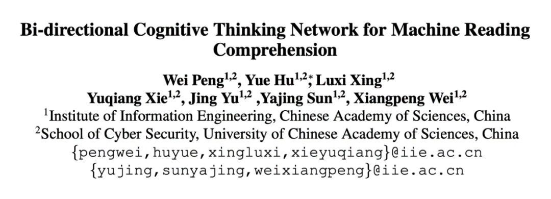 COLING 2020丨面向机器阅读理解的双向认知思维网络