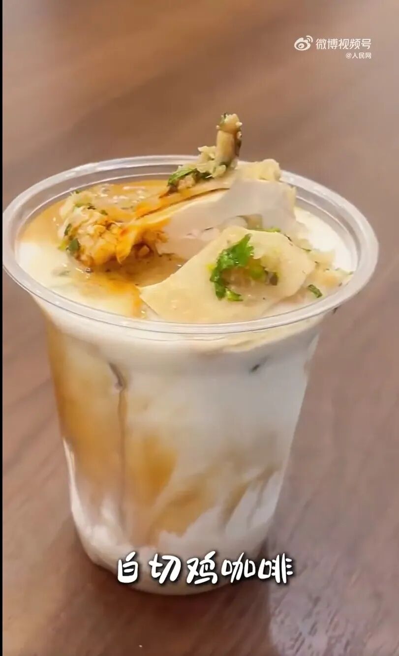 広東省のあるカフェで最近、広東料理の白切鶏(蒸し鶏)入りのコーヒーが登場した。カフェのスタッフは、「広東省ならではのメニューを提供したくて、真っ先に思いついたのが白切鶏だった」と説明する。