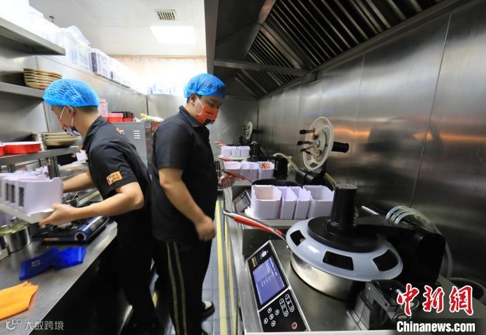 四川省成都市の自動調理ロボットを導入しているレストランのキッチン(撮影・王磊)。