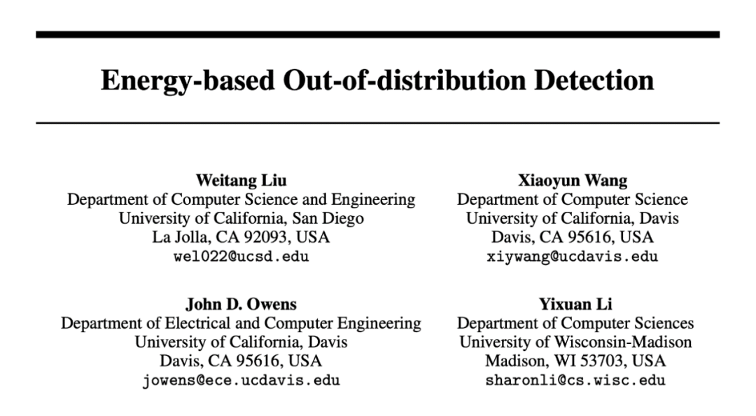 NeurIPS 2020丨基于能量的OOD检测