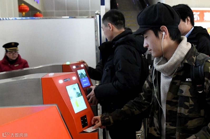2019年1月21日、鄭州駅の改札で顔認証確認と身分証確認を受ける乗客。(撮影・李安)