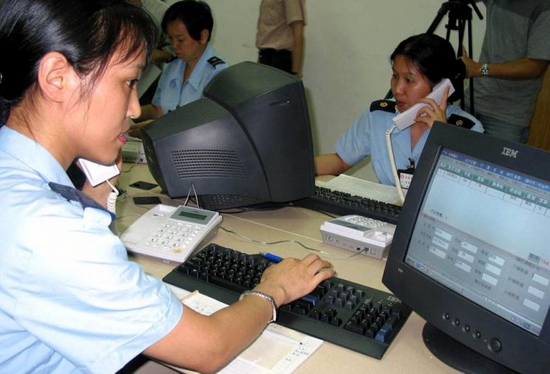 2003年6月18日、乗客から電話で発券予約を受ける広東羊城鉄道のオペレーター。(撮影・周文傑)