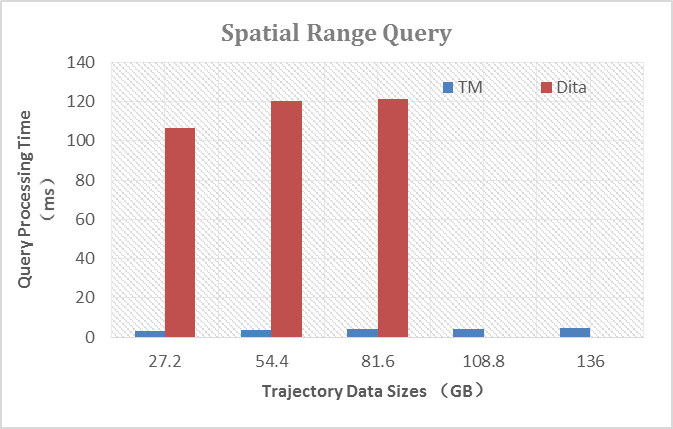 正是先进的索引方法和存储方法,使得JUST的计算效率有了巨大的提升。其中,存储和索引效率相较于原生HBase提升超过7倍,查询效率相对于其他时空查询框架有了上100倍的提升,如图9所示。目前相关研究工作申请了多项国家专利,相关论文也已被国际顶尖会议ICDE 2020接收,受到了国际同行的认可。(TrajMesa: A Distributed NoSQL Storage Engine for Big Trajectory Data.ICDE 2020)