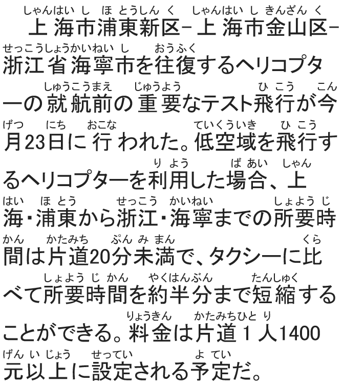 导读:上海市と浙江省結ぶヘリコプターが就航へ!