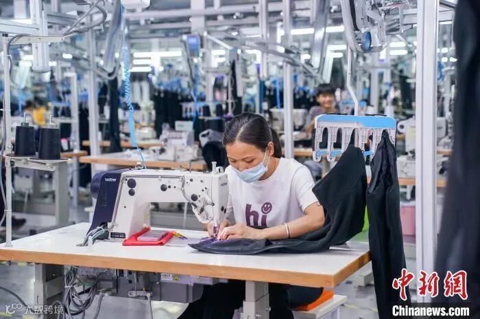 1980年代初頭、同鎮の人々はこぞってアパレルビジネスを始めた。発展を遂げた今、紡績、織布、染色から、刺繍、リブ編み、ゴムひもの製造、さらにはデザイン、販売に至るまで、トータルな産業チェーンが構築され、生産、供給、販売の切れ目のない連携を実現した。現在、同鎮には繊維アパレルメーカーが500社以上あり、そのうち一定規模以上の企業は11社、アパレル産業の有効な登録商標は473件、独自ブランドは108あり、年間で3億着以上の衣類を生産し、製品の販売先は欧州、米国、東南アジア、アフリカなどの国・地域だ。
