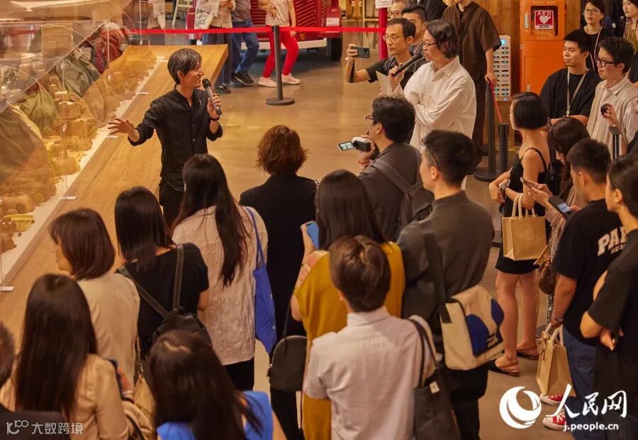 会場で展示作品の紹介を行う田中達也氏(写真奥左手、写真提供・MUJI HOTEL 北京)。