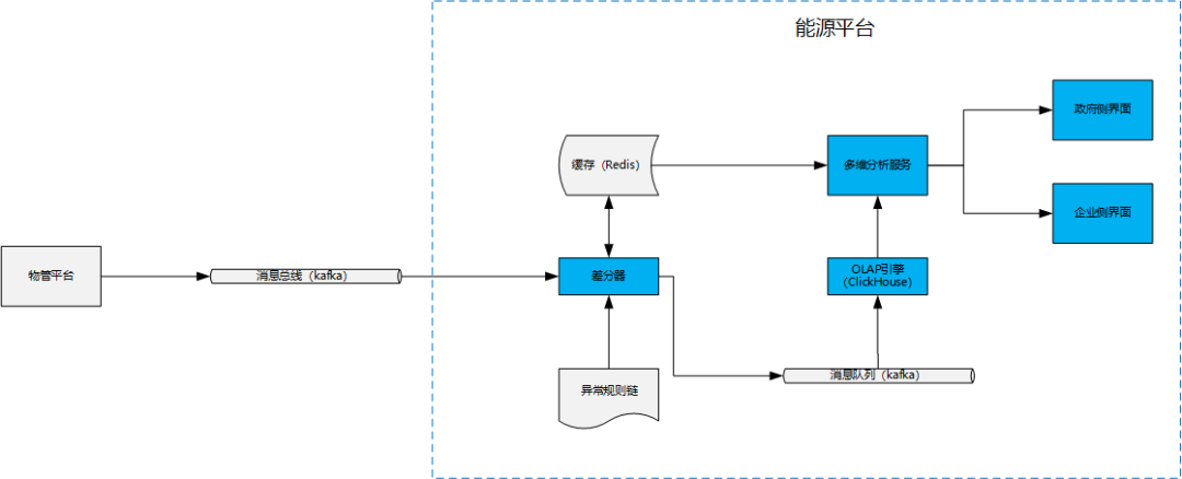消息总线:kafka消息队列,利用JSON格式数据实现物管平台和能平台的数据交互。
