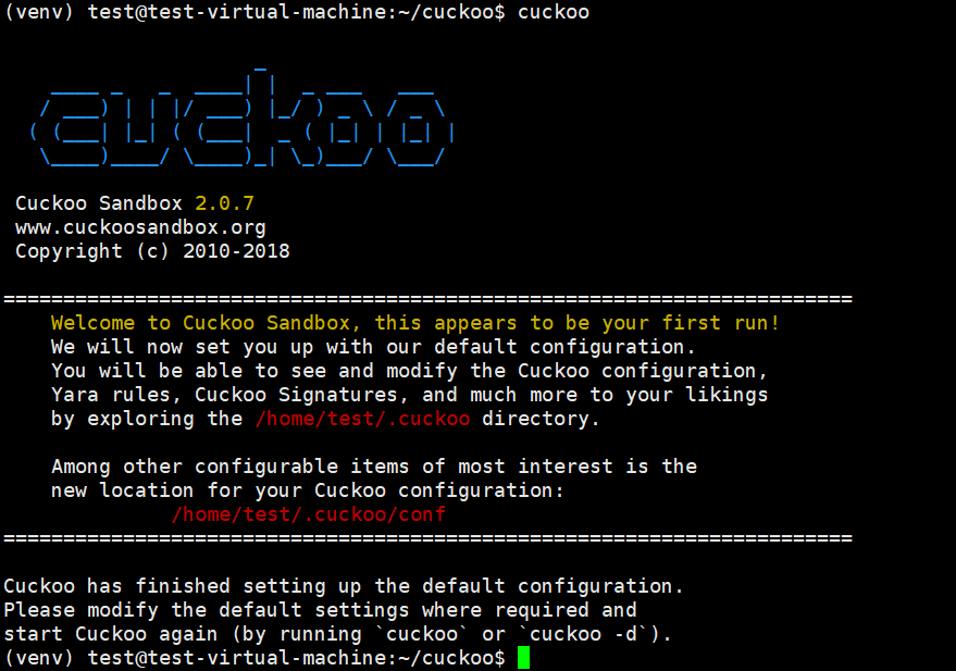 $ sudo mkdir /root/.cuckoo